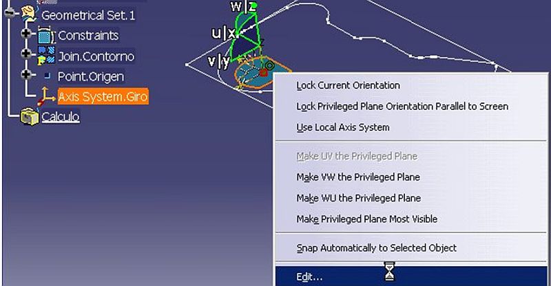 10.- Colocamos el cursor sobre el "plano de privilegio" del compás y con el menú contextual damos a "Edit…".