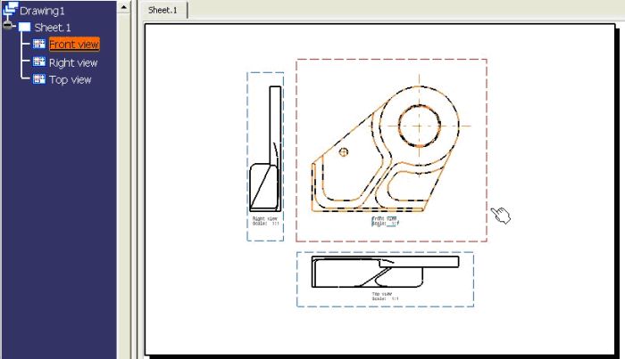Podemos modificar la posición de cada vista "tirando" del Frame (rectángulo de las líneas de trazos) que aparece alrededor de la vista.