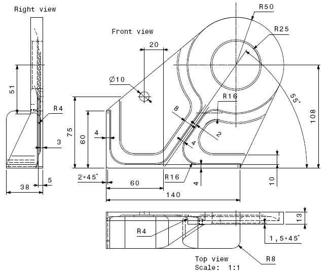 Partiendo del CATPart del ejercicio anterior (Ejer-N09-PartD-Herraje_Angular.CATPart) obtener el dibujo de la pieza y comprobar las cotas.,..Cotas.. que ya pusimos en los Sketch