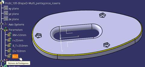 | ► | Fuera del Sketch, obtener el resto de los huecos, pero no volviendo a dibujar el pentágono y el circulo de los huecos. |