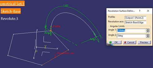 | 6.- | Como el anterior, obtenemos el Revolute del origen y su intersección con el “Plane.CARA” |