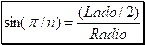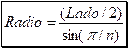 . El Radio es igual a la mitad del radio, partido por el seno de Pi partido por n (siendo n el número de lados del poligono regular), que es el ángulo (en el centro) del triángulo pequeño.