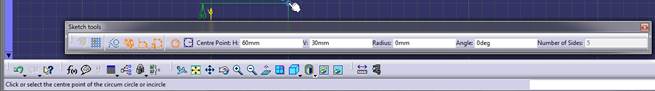 en él dibujaremos un Pentágono regular. En la CATIA V5, Release 16, No existía ese “Predefined Profile”; sólo Rectángulo, Colisos y Boca llaves. En la Release 24, añadieron el Hexágono y en CATIA V5, Release 25 añadieron uno más genérico: el “Polygon”.