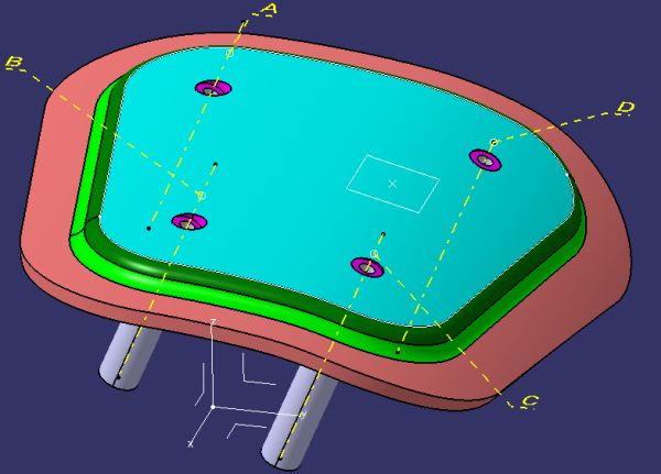Obtener un "Procedimiento" que permita definir rápidamente cual es el Plano que define la profundidad mínima del Ø16mm. Para ello, recomiendo obtener un plano por encima de la pieza, donde dibujaremos los círculos y que las dirección de las 4 rectas (A, B, C, D) sean de arriba hacia el plano XY.