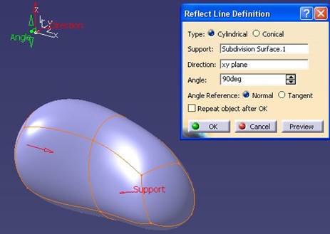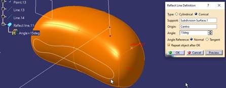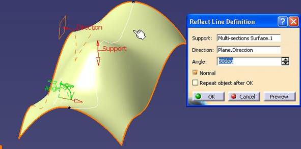 | 4.- | De al botón [OK]. La curva creada es añadida al árbol e identificada como “Reflect line.xxx”. |