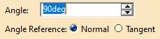 | 3.- | Teclee un ángulo que representa el que forma la dirección seleccionada y la Normal (porque hemos seleccionado esa opción) a la superficie o la Tangente (si la opción es “Tangent”). En nuestro caso hemos puesto el que trae por defecto 90deg. |