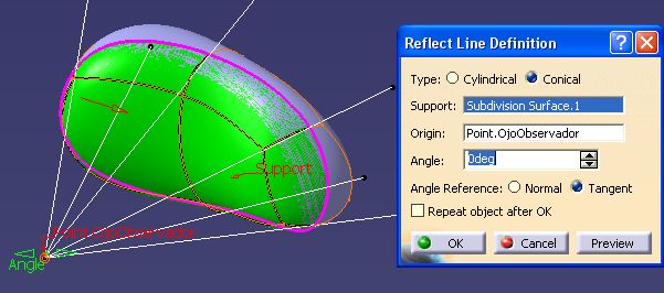 | • El campo “Angle” esta “ligado” a “Angle Reference”, es decir: respecto a qué línea reflejada (una Normal o una Tangente), se mide ese ángulo. | ![]() |