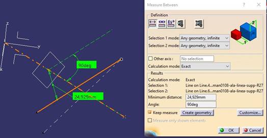 Caso de ángulo respecto de una Línea: “Angle or Normal to curve”. Uso de Support o no.