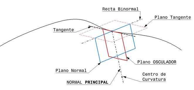 Cuando la curva No es planar, existen un haz de rectas “normales”: todas las contenidas en un plano perpendicular a la curva en ese punto. Y ese plano es único. Pero, de todo es haz, sólo una cumple la condición de Normal Principal , que es la que está apoyada en el Plano Osculador.