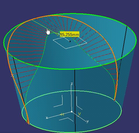 | 5.- | Dibujamos una recta Normal a la Curva en ese punto, dando como Support, el plano Osculador. |