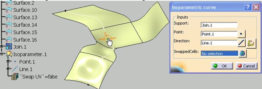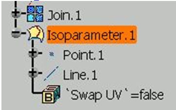 Las superficies están definidas por ecuaciones con dos parámetros: en el caso de CATIA V5 son u y v. El parámetro u es un vector que nos define la superficie en una dirección y el v en la dirección contraria (sabiendo que siempre son cuadradas). Una curva, en que se mantenga constante un parámetro es una curva isoparamétrica. Como en el mapa del tiempo las curvas isobáricas son las curvas de los puntos que tienen la presión (en bares.. como me gusta ese término) iguales.
