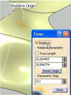 5.- Active la opción "Relative". El origen de la curva es mostrado sobre el soporte de la misma.